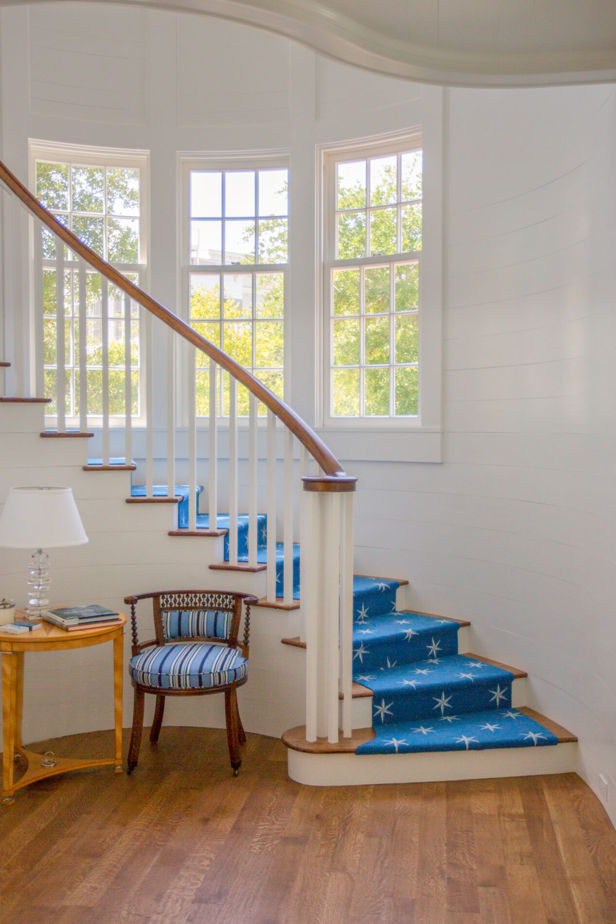 Another unforgettable aspect of the project was the continuous curved stair railing, a testament to E. F. San Juan’s craftsmanship. “The handrail was actually glued up on site on the stair rail here by my father and grandfather,” Eddie says. “Seeing that in place really just brings the design together and brings you into the second story.”
