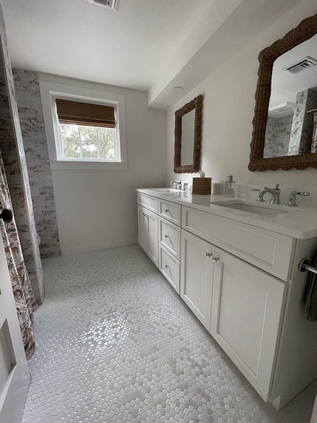 E. F. San Juan is proud to have been a part of this piece of history. This Panama City residence is over 100 years old, and its owners hold a personal and special place in the heart of the E. F. San Juan family. While the home’s interior all looks like it came from a magazine, the remodeled kitchen is the focal point with a lot of wow factor. E. F. San Juan was able to keep a lot of the original accented features of the home while bringing a modern look to the space with the custom cabinetry and kitchen island, along with accompanying trim. The room now has modern accessibility and amenities for today’s needs. Our team created custom cabinetry for bathrooms and other spaces throughout the home, as well as an impact-rated solid wood front door. The home’s natural lighting is some of the best we’ve seen, and that was accomplished by adding more than 20 new windows from our partners at Weather Shield.