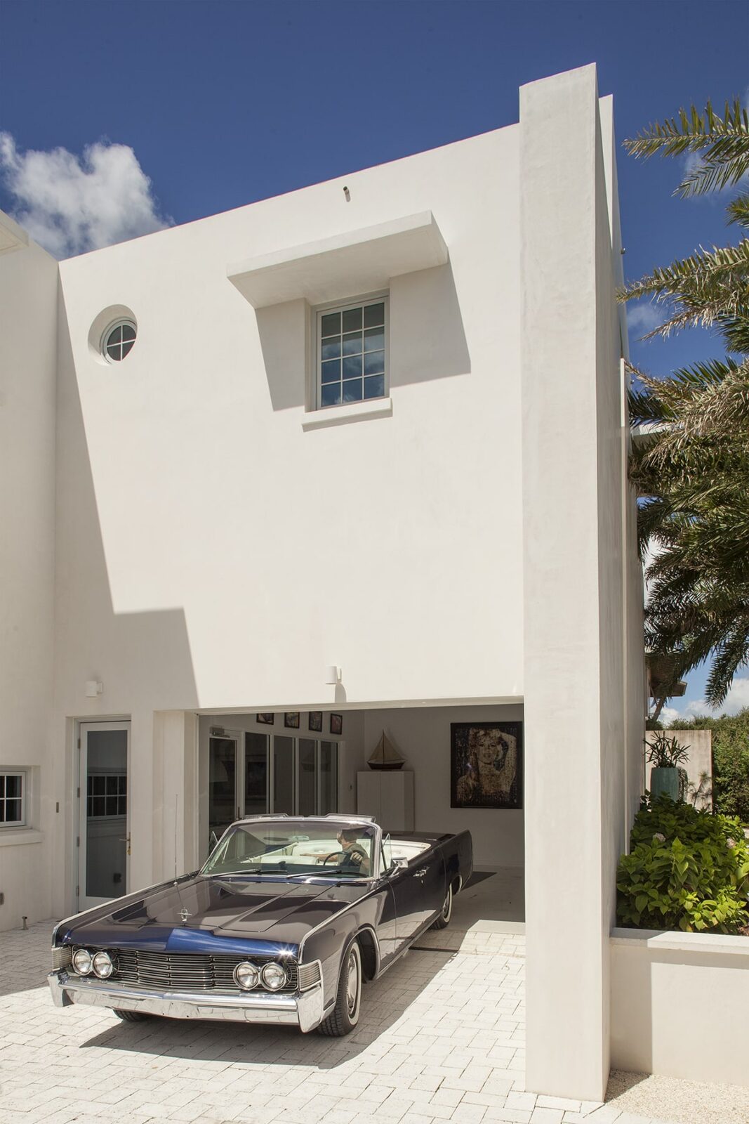 E. F. San Juan worked very closely with Gary Justiss and the builder, Peter Horn III of Artisan of Seagrove, Inc., to source custom exterior windows and doors that not only look great but will withstand the high winds and rains that could come off the Gulf. We worked with our partners at Loewen®, based in Steinbach, Canada, to create a beautiful array of LiftSlide doors for the Gulf side of the home. These multi-panel, impact-rated glass doors slide to fully open up the living area to the pool deck, rooftop sundeck, and gorgeous Gulf views, creating authentic indoor-outdoor living spaces throughout the home. We also sourced and installed Loewen® windows around the exterior, including a porthole-style window and large single-pane windows in the tower lounge. While the interior windows and glass door to the garage are not Loewen®, they complement the impact-rated exterior products and create a unique effect to showcase the homeowner’s vintage vehicle!