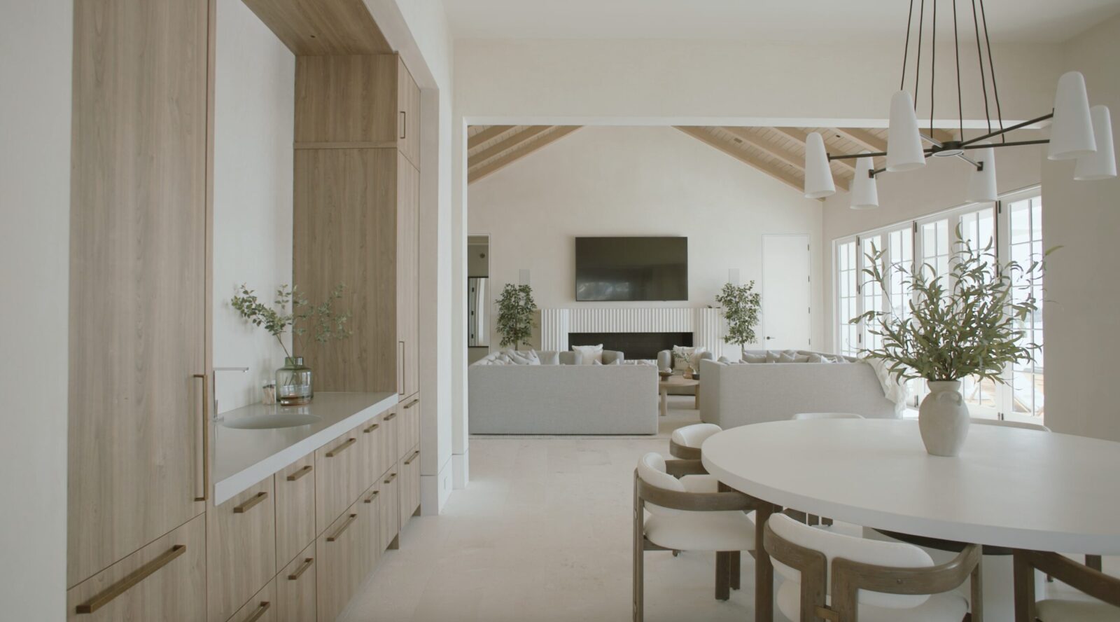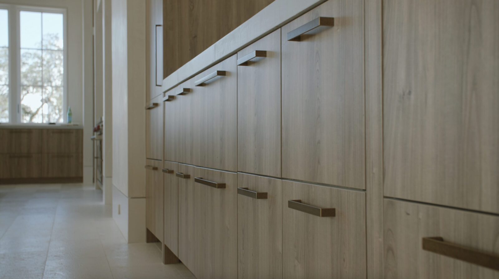 This is architect Wes Seaborn’s showcase home—if you go to his website, this is the house he chose to represent his work. So you know every detail had to be dialed in. Beautiful white oak carries through the entire house—you’ll see it in the cabinetry, the doors, the trim. It’s a timeless choice that brings warmth to Wes’s modern design.