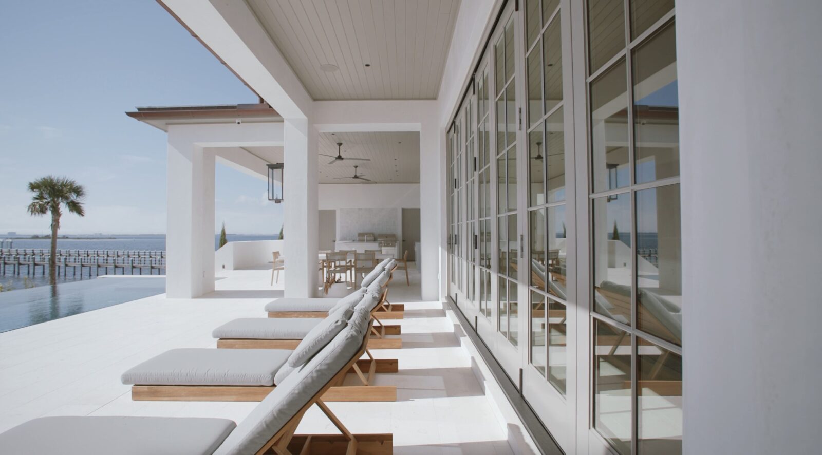 This is one of those rare projects where E. F. San Juan provided essentially everything—the complete impact window and door package, every interior door, all the trim and millwork, even the hardware. When you see the cohesion throughout this home, that’s what happens when one millwork company handles it all. McIntosh-Myers Construction built this house, and you can see the level of quality throughout. When you’re working with a builder who cares this much about detail, it elevates everything we provide. Being right on the bay means everything on the exterior had to be impact-rated. These aren’t just beautiful windows and doors—they’re engineered for coastal performance.