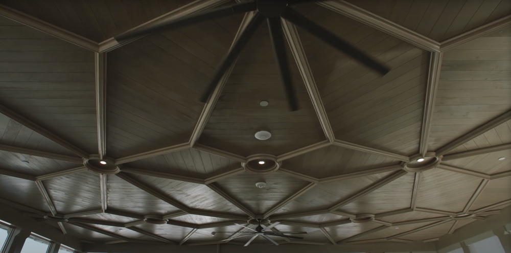 Inside, the architectural design continues to impress. The interior courtyard features elegant blind chamfer column wraps, tapered blind chamfers, and coved end rafters that set a soothing tone for relaxation. E. F. San Juan provided exquisite decking, further showcasing the project’s artistry. Inside the facility, blind chamfer mull posts, a stunning ceiling, and intricate paneling and beams create a seamless architectural flow, blurring the lines between the exterior and interior and enhancing the overall design.